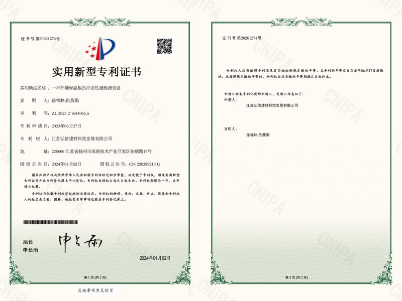 實用新型證書_一種外墻保溫板抗沖擊性能檢測設(shè)備