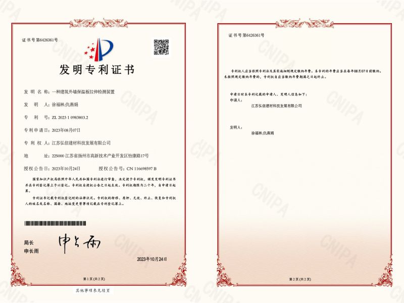 發(fā)明證書_一種建筑外墻保溫板拉伸檢測裝置